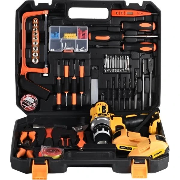El Kit Taladro Destornillador Inalámbrico es la herramienta que todo hogar o taller necesita: práctico, potente, fácil de usar y totalmente portátil.